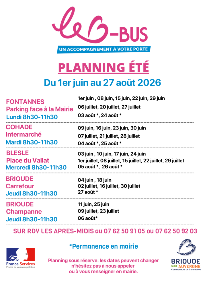 n raison des fortes chaleurs estivales, les conditions d’accueil à bord du B-BUS France Services peuvent devenir difficiles, tant pour les usagers que pour les agents. Ces situations entraînent parfois des annulations de permanences à la dernière minute.